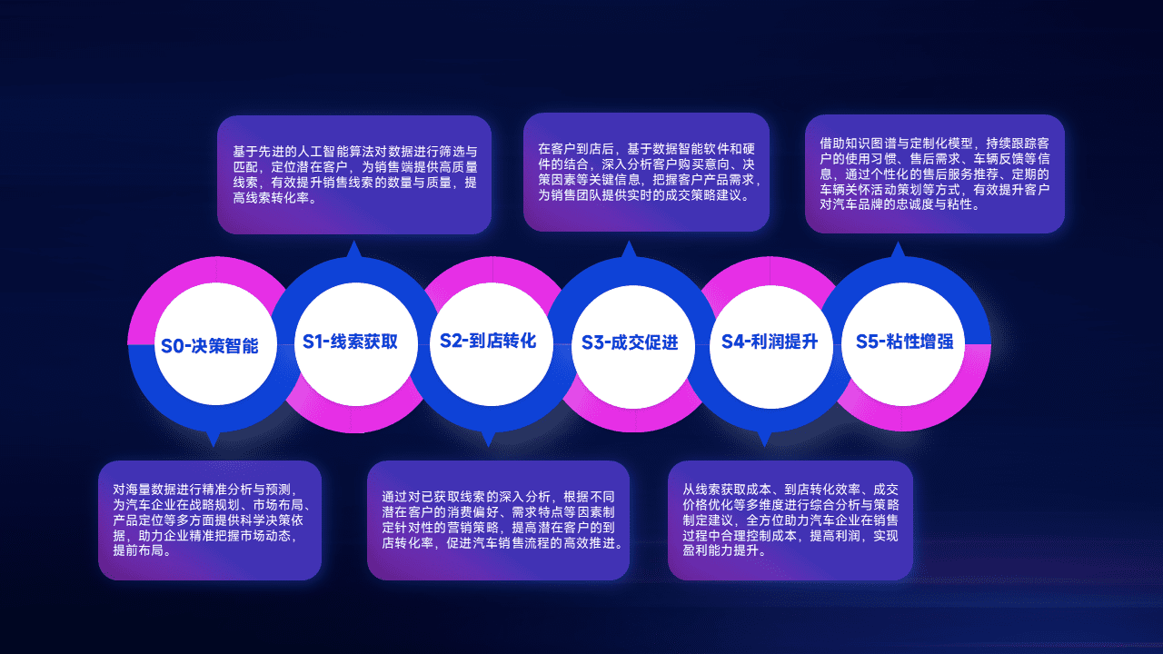 通过拓宽潜在客户来源、、、优化线索分配并提高到店转化率,,,,以增强销售效率。。。。同时,,,,利用线索数据不断优化分析模型,,有效提升转化率,,,扩大营销影响力。。。